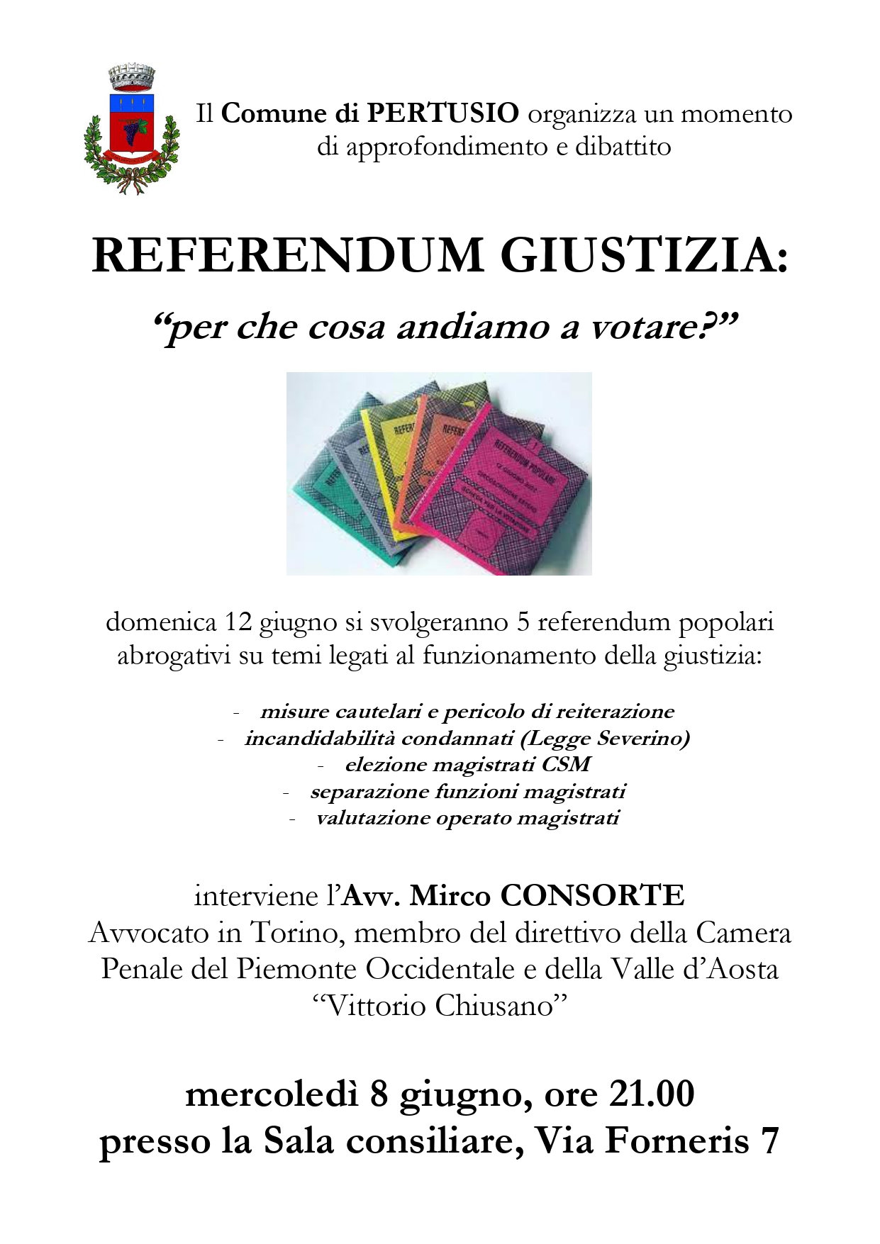 Il Comune di Pertusio organizza un momento di approfondimento e dibattito: REFERENDUM GIUSTIZIA " per che cosa andiamo a votare?