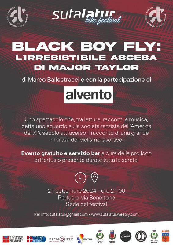 - sabato 21 settembre, serata teatrale “Black boy fly” presso il capannone delle feste della Pro Loco di Pertusio;