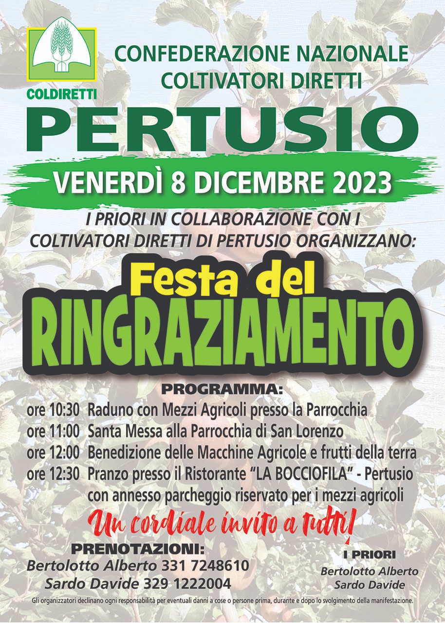 Festa del Ringraziamento in programma per Venerdì 8 dicembre 2023