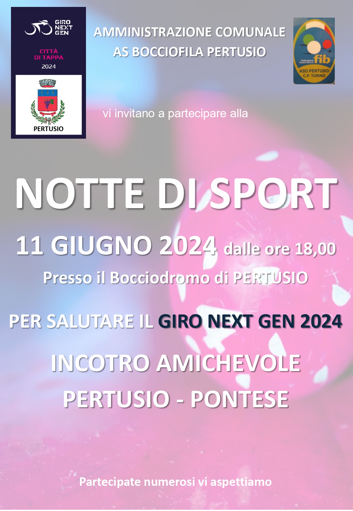 Martedì 11 GIUGNO 2024, dalle 19.30, aspettando la 4° tappa del Giro Next Gen la NOTTE ROSA di Pertusio.