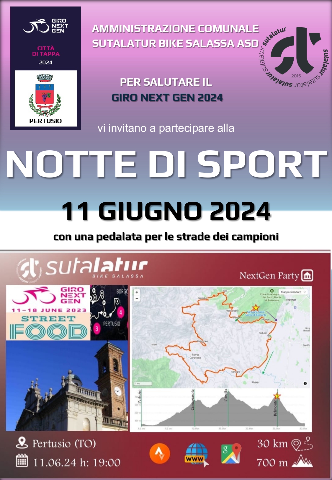 Inoltre, l' amministrazione comunale con il Satulatur Bike Salassa Asd per salutare il Giro Next Gen 2024 vi invitano a partecipare alla Pedalata per le strade dei campioni