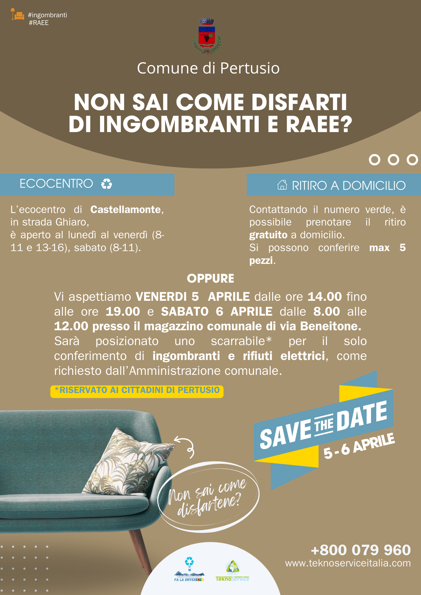 Informazioni in merito a eventuali campagne straordinarie di raccolta dei rifiuti urbani e a nuove aperture o chiusure di centri di raccolta.